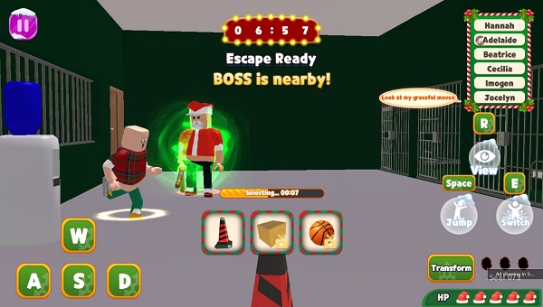 In the game, players will transform into various objects to hide in the room. Before the hunt begins, you have a few seconds to prepare and choose a suitable form, such as a cardboard box, candy, trash can, or broom and find a hiding place immediately. When the countdown ends, Santa Claus appears in a frenzied state, wielding his stick and searching everywhere to find the escapee.