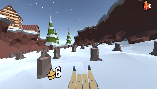 Snow Rush 3D is an exciting snowmobile game with lots of surprises in the gameplay. Start with a speed dash that takes you right into the race. Glide through the forest full of snowmen, adjusting the speed reasonably through the narrow turns. The race becomes more dramatic when dangerous cliffs suddenly appear, followed by a split road forcing you to fly and jump to overcome the deep chasm ahead.